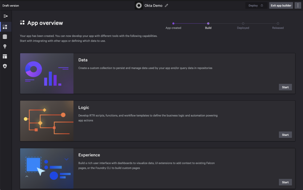 First, we’ll start by creating an app using Falcon Foundry that in turn, will leverage Falcon Fusion SOAR.
