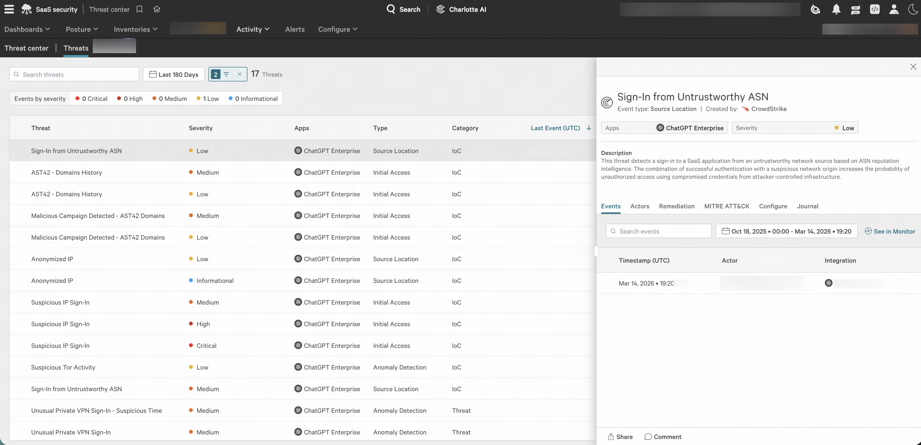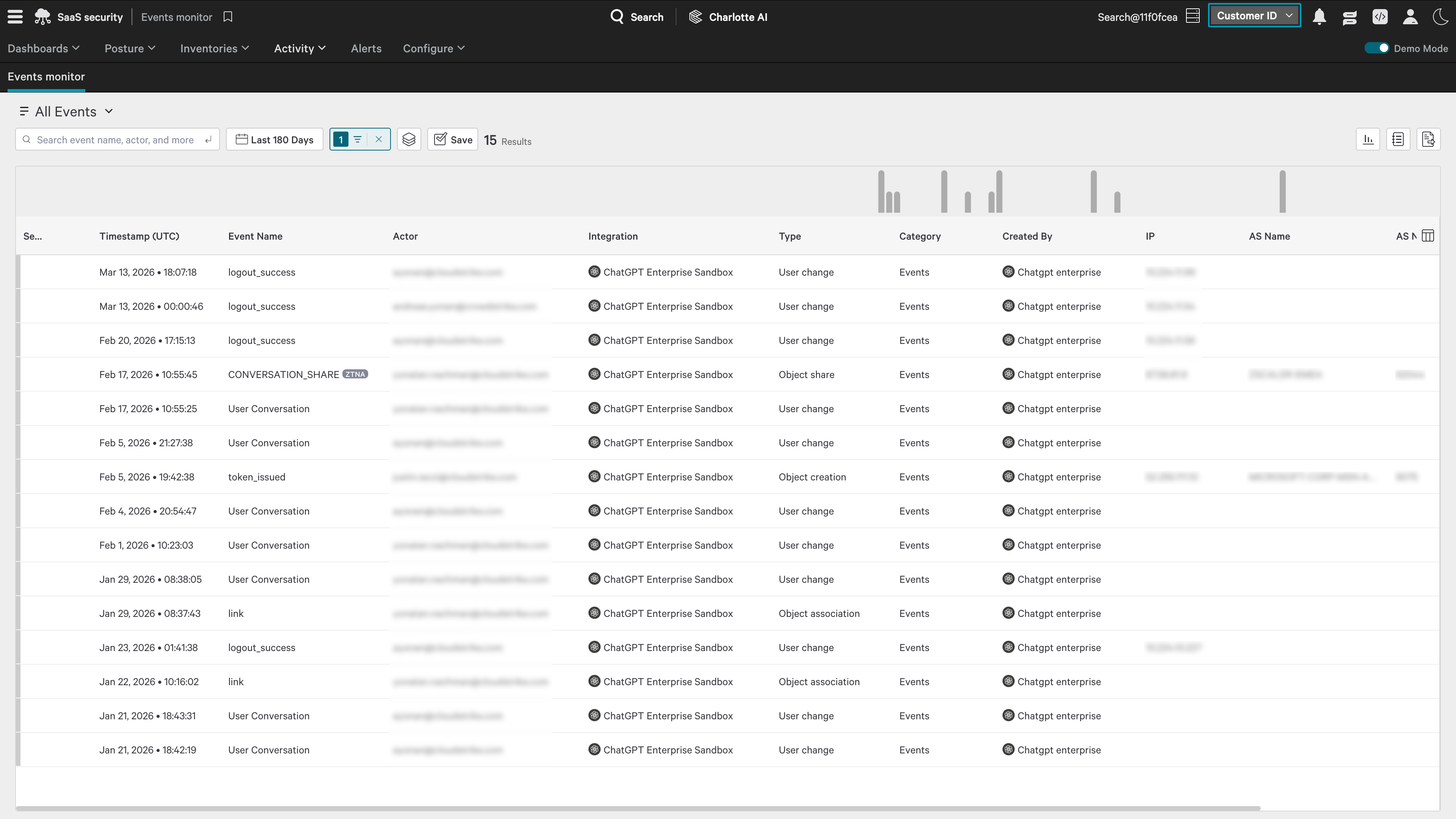 Building on our August 2025 integration launch that introduced visibility into AI agents and security configurations, CrowdStrike is now expanding its ChatGPT Enterprise integration to deliver deeper audit logging and continuous activity monitoring within CrowdStrike Falcon Shield SaaS security. This expansion enables monitoring of authentication activity, administrative changes, tool usage, Codex events, and conversation-level logs across ChatGPT Enterprise workspaces.