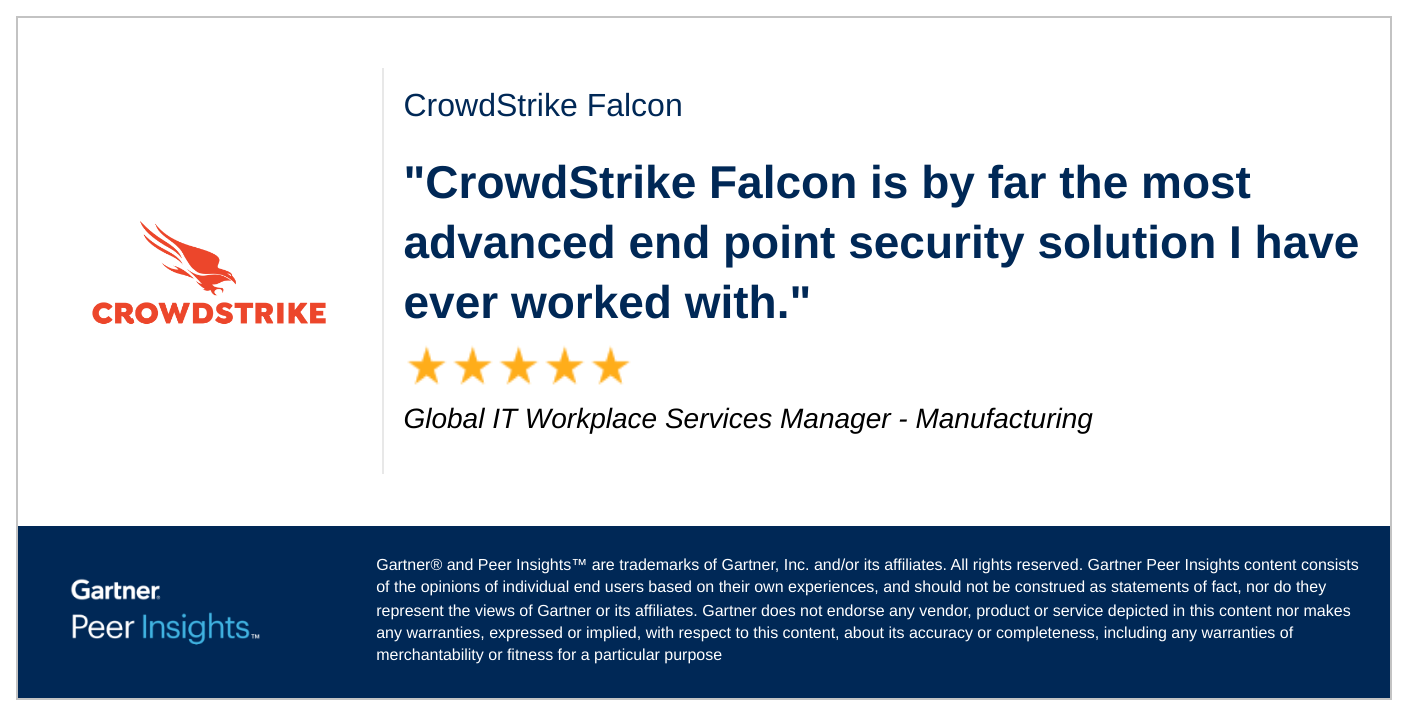 There's a lot more to [EPP] than just prevention, there's also reporting, threat hunting, and a lot of other things that go on top of that and those also need to be easy to use. So that's what pushed us towards CrowdStrike. The ease of deployment, the efficacy of the actual solution itself, it can do things at the speed you need them to be in today's world."
