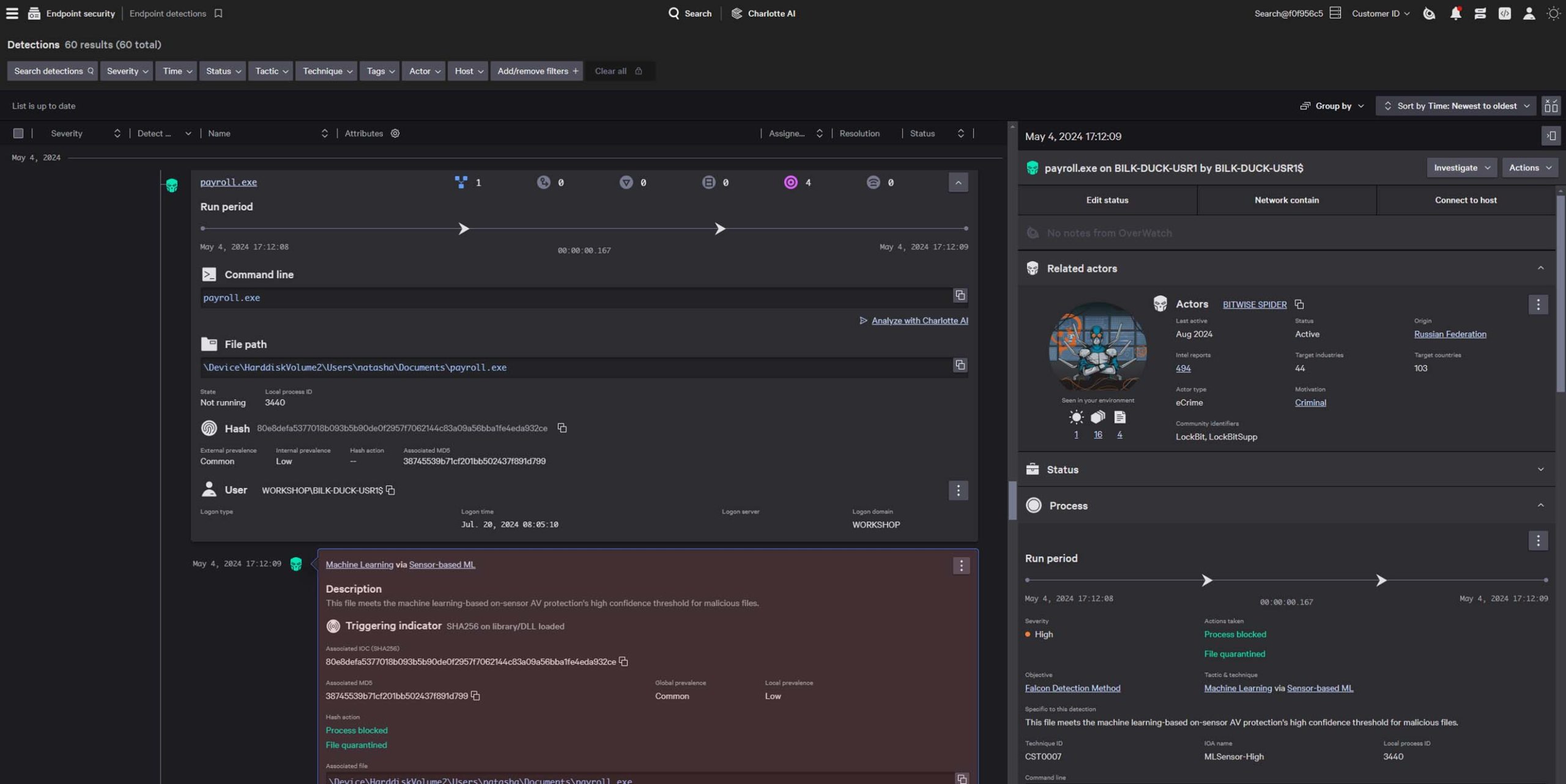 Falcon Prevent stops advanced threats even when you’re offline. AI, threat intelligence, behavioral analysis, high-performance memory scanning, and exploit mitigation all work together to rapidly identify and stop advanced threats from ransomware to fileless attacks.