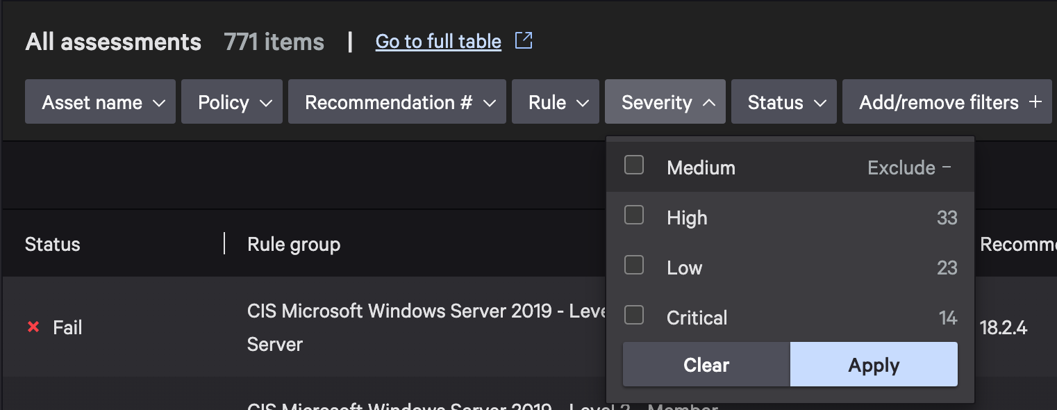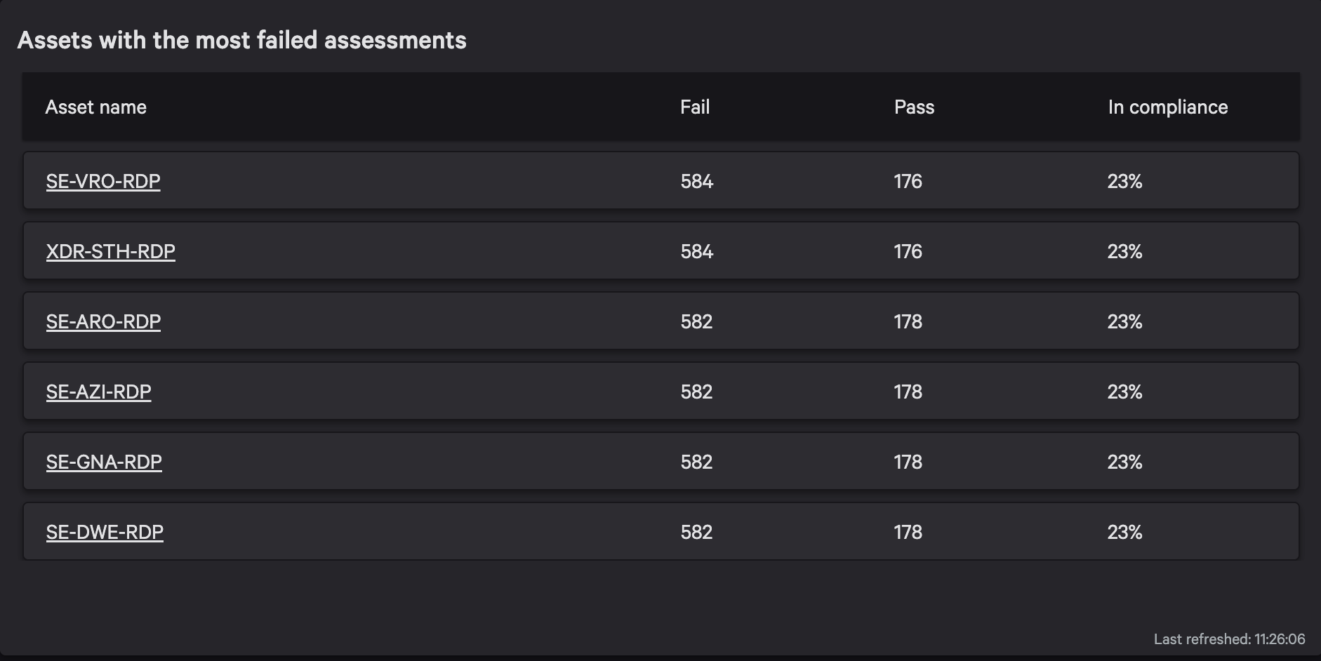 Scroll down to the “Asset with the most failed assessments” tile and select an asset.