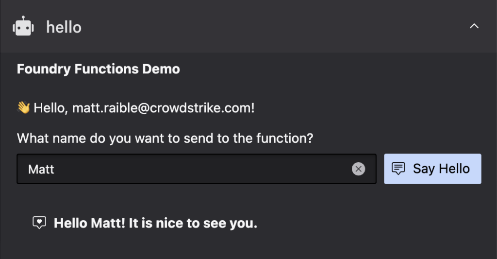 It’s best to use functions when you’ve exhausted all the other possibilities in Falcon Foundry. If you can perform the work with an API integration and actions in a workflow, try that first. That being said, if you’re a developer that’s fluent in Python or Go, you may be able to iterate faster with functions.