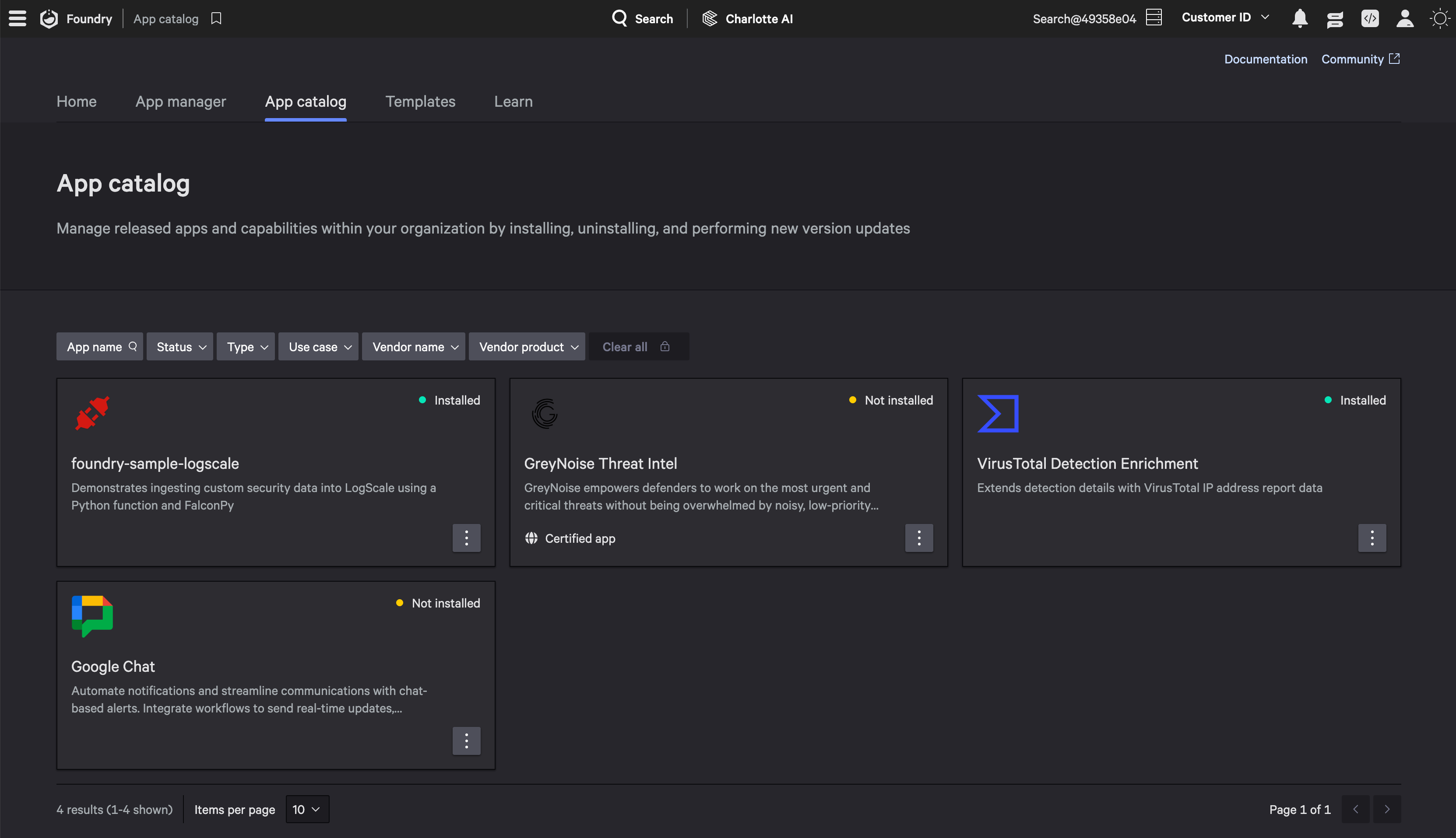 Once your app is approved and published, it appears in the app catalog with a “Certified” badge. This badge tells customers that your app has passed CrowdStrike’s review process.