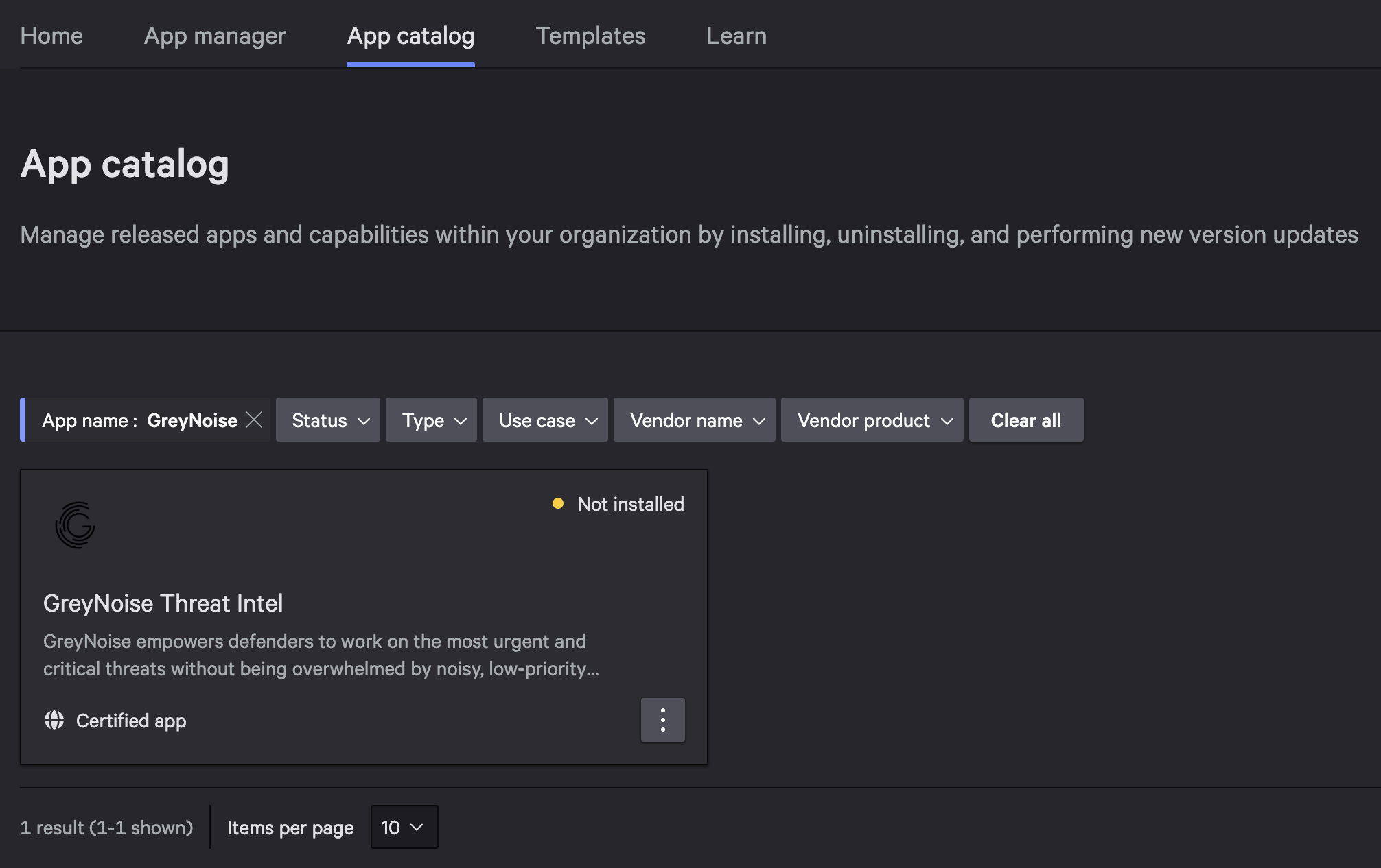 You can find it in the Falcon console at Foundry > App catalog and searching for “GreyNoise”.