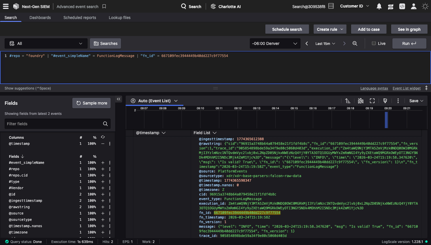#repo = "foundry" | "#event_simpleName" = FunctionLogMessage | "fn_id" = <your-function-id>