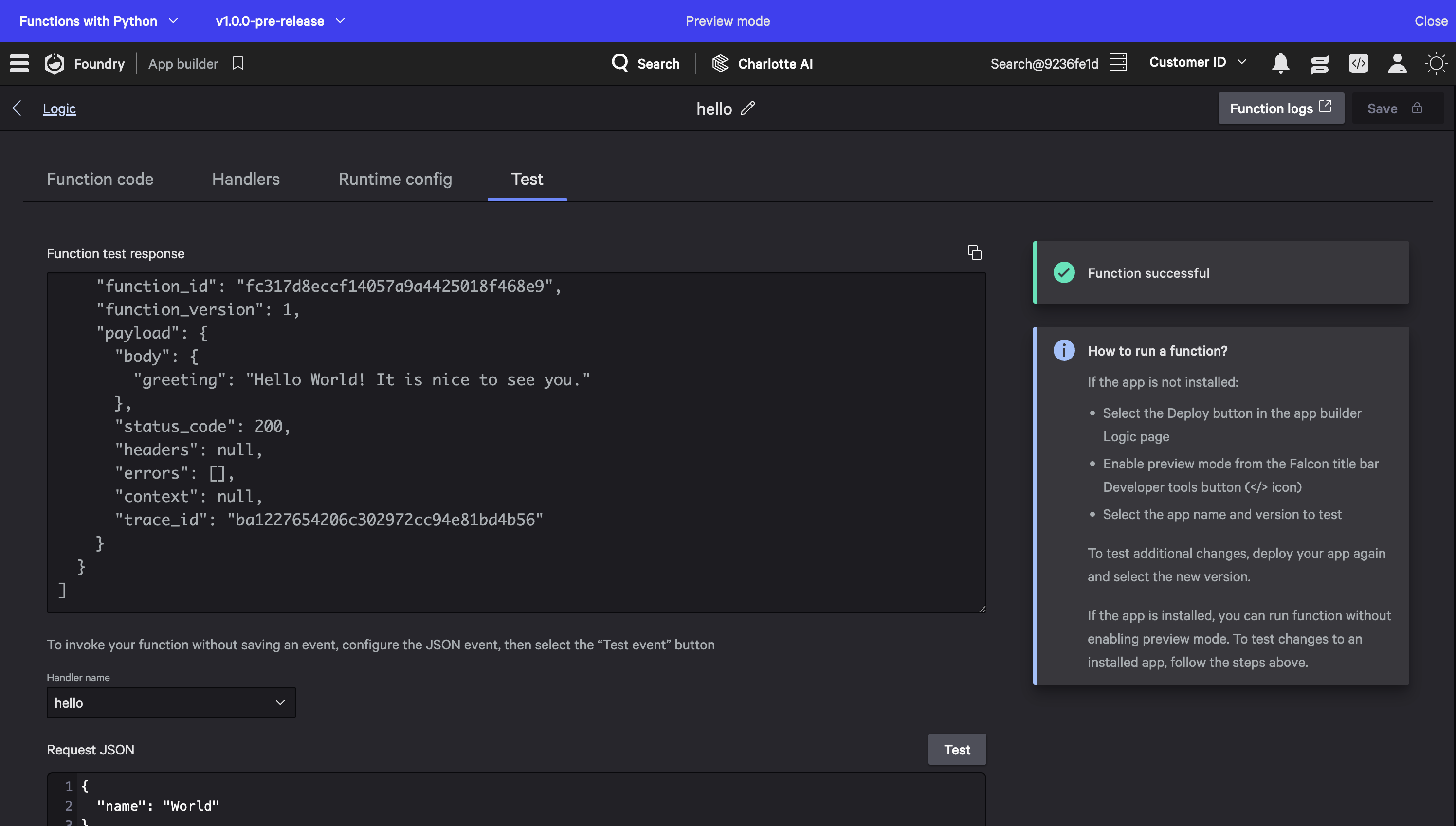 Write and Test Falcon Foundry Functions with the New Python Editor